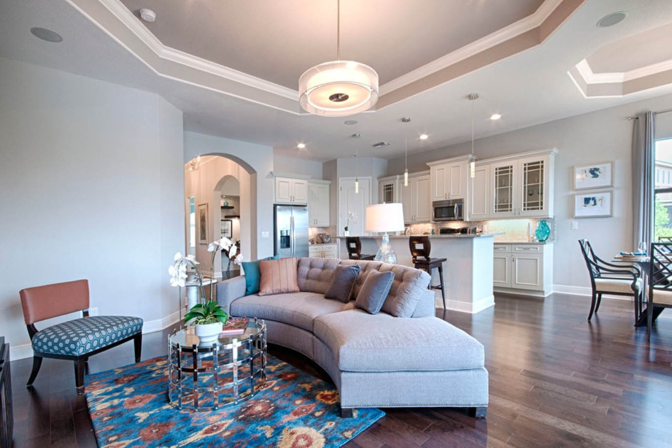 Гостиная — идеальное место для смелых дизайнерских решений. Объемные потолки из гипсокартона станут хорошим дополнением для любого стиля. Аристократичный викторианский, нежный прованс, элегантную классику подчеркнут симметрические своды, арки и лепнина. В жизнерадостном кантри или просторном лофте можно прикрепить гипсокартонные балки. Для сдержанного модерна или лаконичного японского стиля подойдут строгие геометрические формы.