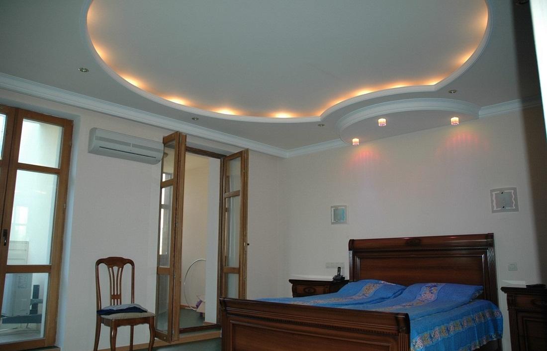 Это наиболее сложные конструкции, которые применяют, в большинстве случаев в высоких помещениях. Многоуровневые потолки из гипсокартона смотрятся изумительно роскошно. Дополненные фигурными ансамблями, цветными лентами светодиодов, небольшими зеркальными поверхностями, они могут гармонично оформить интерьер гостиной, зала или спальни.