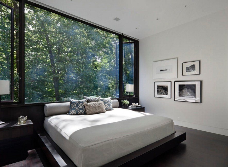 На фото проектов дизайна спальни 10 кв. м видно, что самым популярным стилем в таких случаях является минимализм.