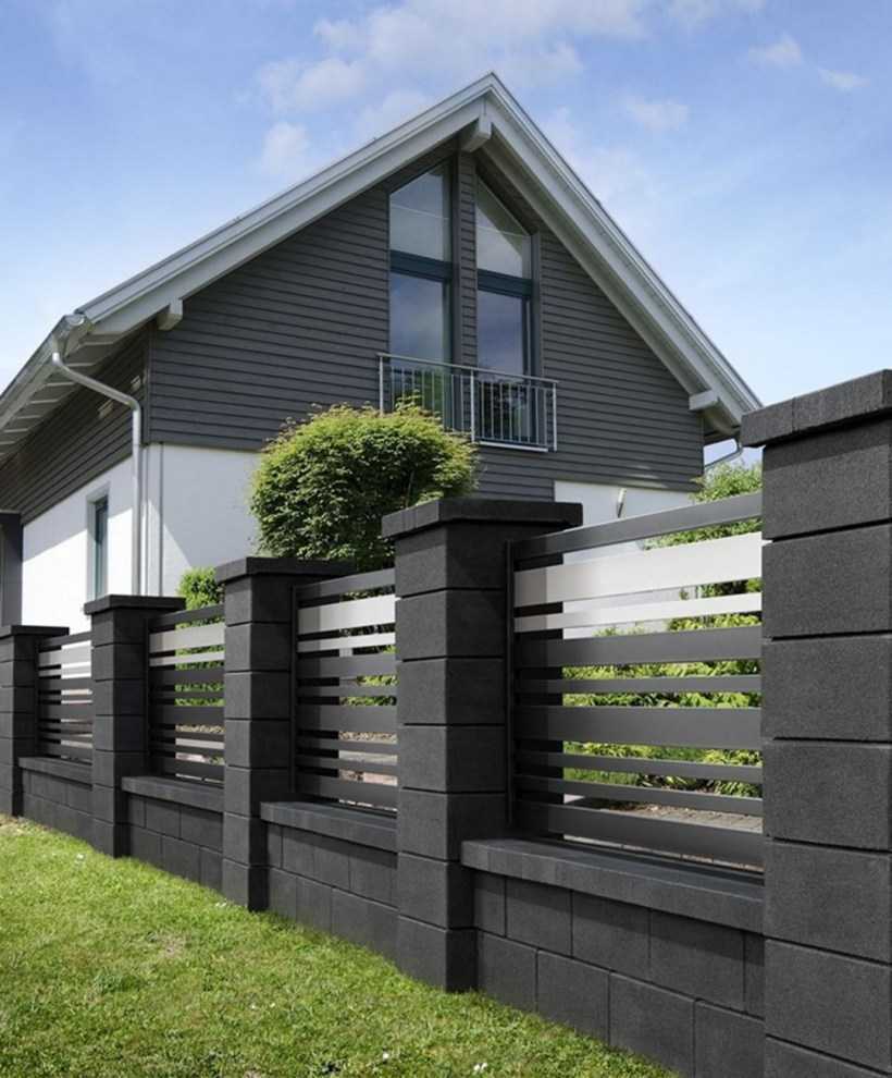 Массивные стойки придают ограждению солидность, превращая его в часть наружного архитектурного дизайна участка и дома.