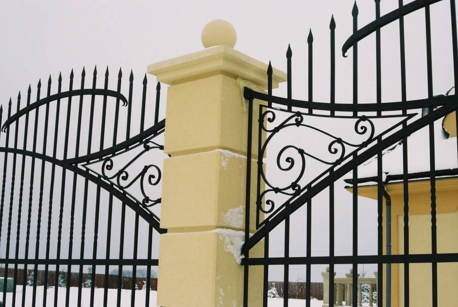 Секции ограждения имеют большой вес. Крепить их следует только к прочным стойкам из металла. Приварить железные конструкции можно к платикам и планкам, вмонтированным в столбы: