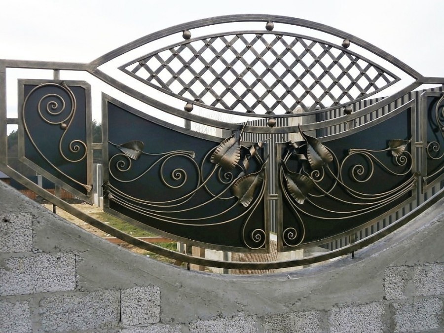 При изготовлении ворот или калитки используются элементы с нестандартной формой. При большом количестве секций их соединяют хомутами или закладками. Иногда крепление элементов происходит при помощи сварки. В интернете найдется множество фото с разными рисунками. Профессиональные мастера подскажут, как лучше сочетать орнамент.