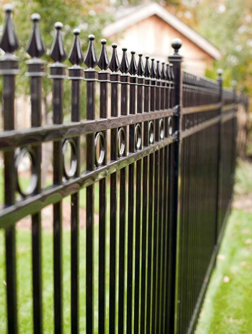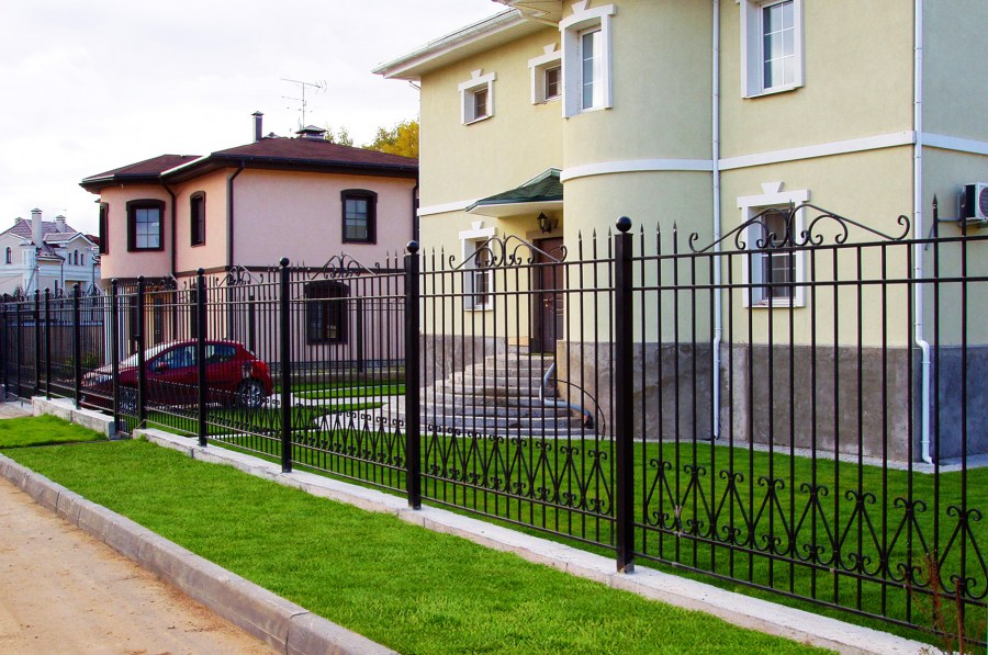 Штампованная ограда может повторятся на многих участках и стоит гораздо меньше, чем изготовленная вручную.