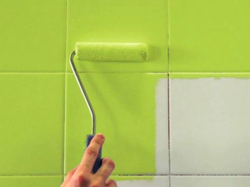 Есть специальные грунтовки, которые помогут улучшить адгезию, они замаскируют трещины, сколы и прочие дефекты на плитке, так что краска будет хорошо ложиться.