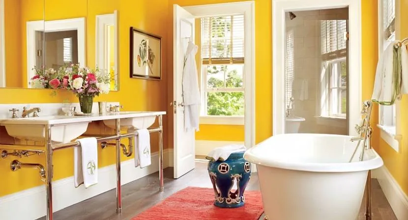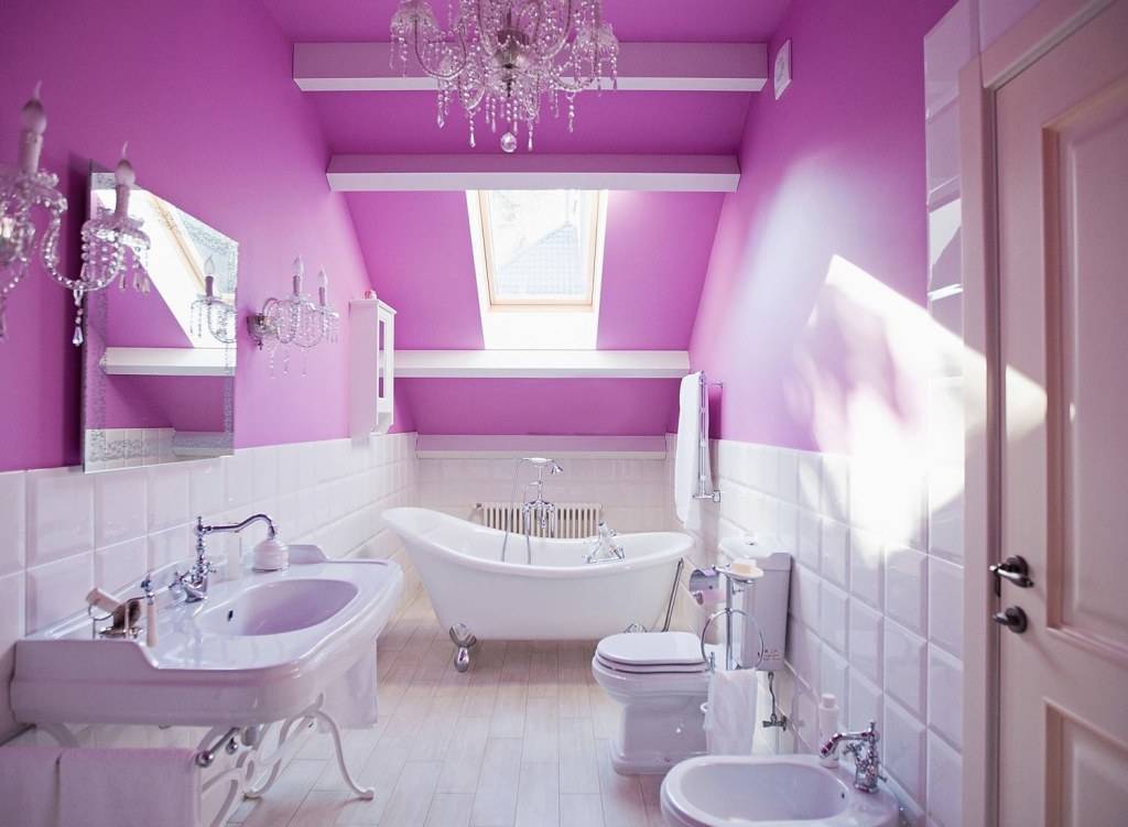 Выбор можно делать в зависимости от габаритов помещения. К примеру, небольшие ванные следует окрашивать в светлые оттенки. Такие стены отлично впишутся в общий интерьер. Для помещений попросторнее могут быть выбраны различные экспериментальные варианты. Отлично, если стены окрашены контрастно. Однако следует учитывать и расположение бытовой техники, купели.