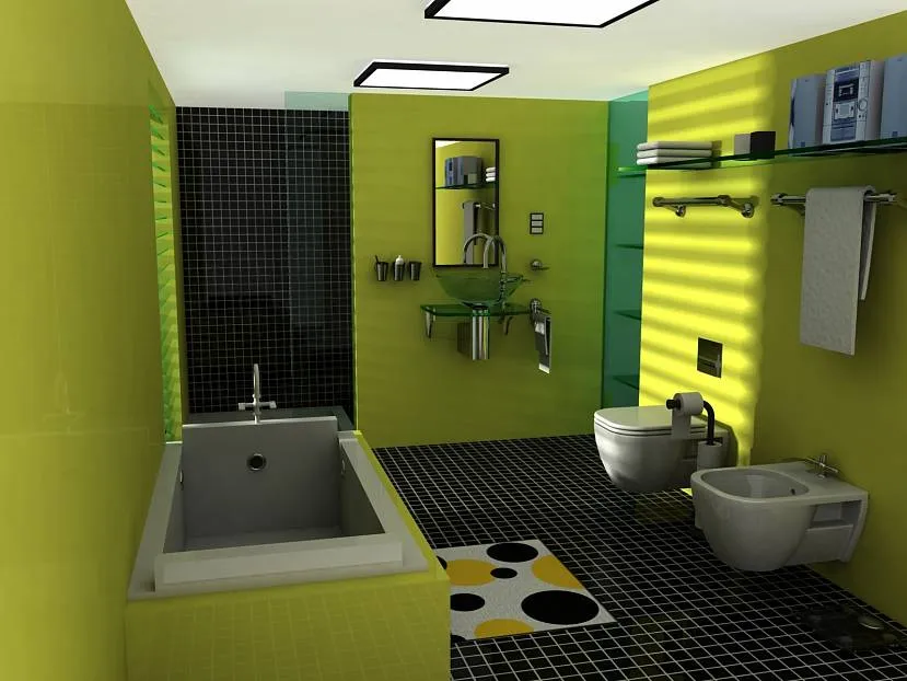 Жизнерадостный зеленый двух оттенков в ванной комнате