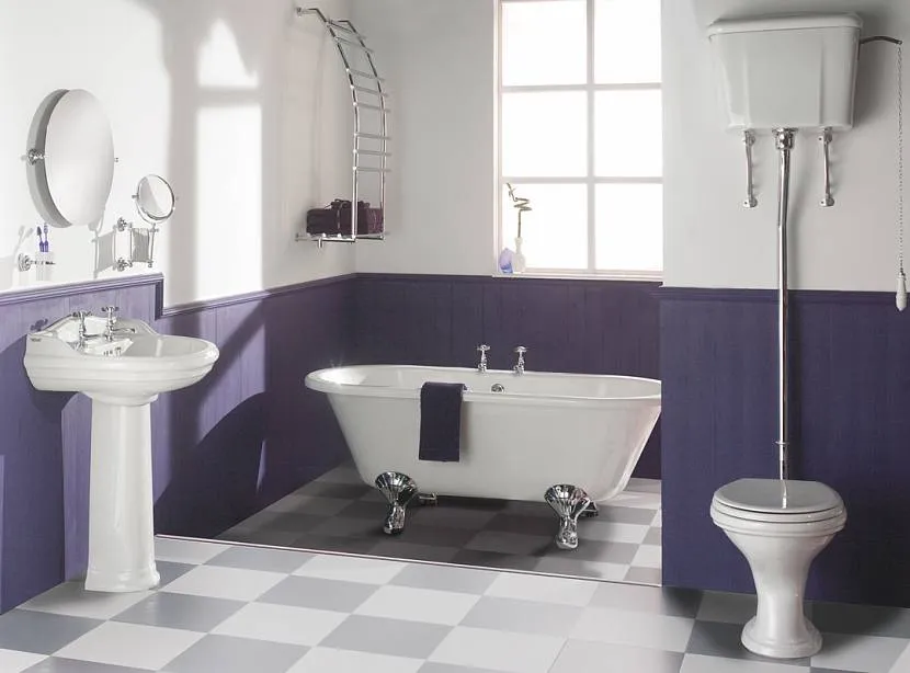 Оригинальность интерьеру ванной комнаты придает стиль прованс. К оформлению в духе французской деревни идеально подойдут нежные пастельные оттенки красок для ванной комнаты: сиреневый, розовый, бежевый и другие. Покрытие стен ванной при этом делают матовым, применяя для разнообразия рисованные орнаменты с растительными мотивами.