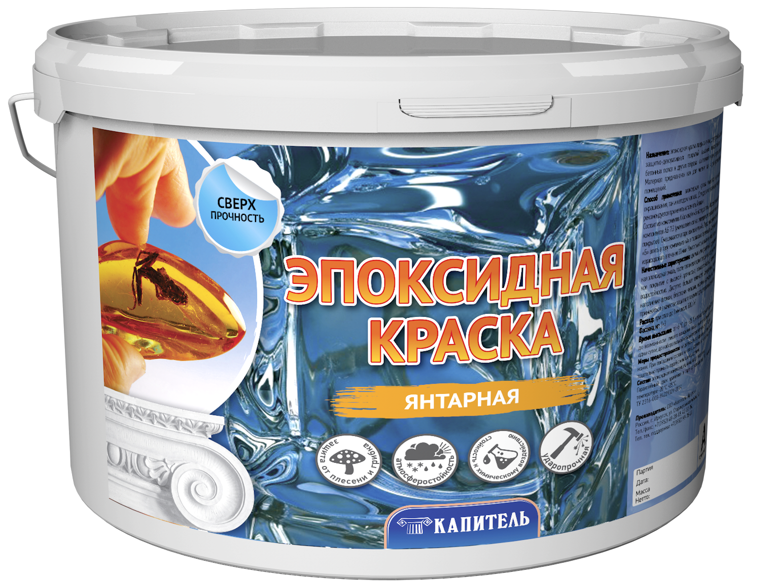 Особенность эпоксидной краски – возможность создать особо прочное покрытие, устойчивое к воздействию агрессивных химических веществ. Используется для окраски металлоконструкций, которые эксплуатируются при тяжелых климатических условиях. Обладает высокой токсичностью, из-за чего работы по окрашиванию должны применяться индивидуальные защитные средства, включая респиратор и перчатки.
