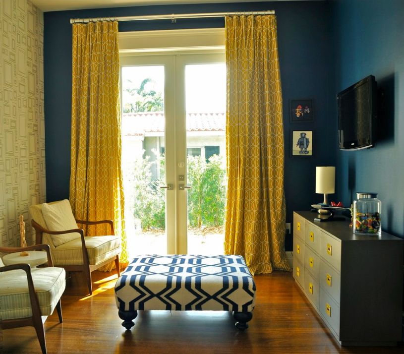 Желтые шторы создают видимость солнечного света даже в хмурой, плохо освещаемой комнате.