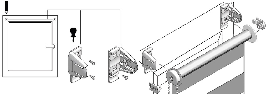 Схема монтаж жалюзи на пластиковое окно при помощи сверления