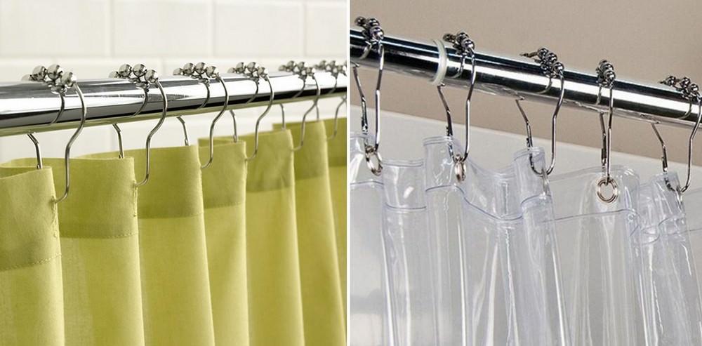 Для штор в ванную лучше всего использовать пластиковые кольца, одетые на штангу. Пластик не подвержен воздействию влаги так, как металл, поэтому именно он прослужит дольше всего. Кроме того, неплохо будут смотреться специальные элементы-крабики.