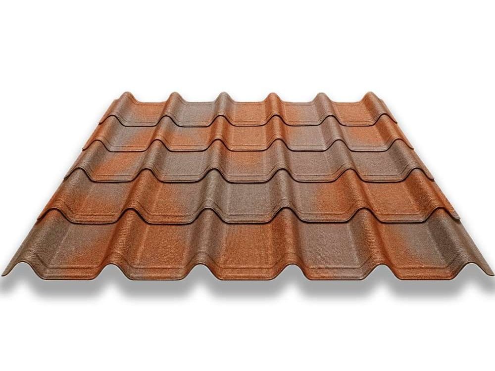 Ондулина. Это битумные листы из Европы, имитирующие на вид шифер. Но они абсолютно другие по качеству. Спрессованные целлюлозные волокна, покрытые смолой, обладают легкостью и прочностью. Однако не настолько, чтобы выдержать сильный удар или большой массив снега. Зато благодаря своей мягкости они не создают шум при дожде. Также к их достоинствам относят привлекательный вид, так как листы выполняются в разной цветовой гамме. Но они подвержены возгоранию, что является большим минусом. Стоимость листа размером 0,95 х 1,95 м варьируется в пределах от 400 до 500 рублей.