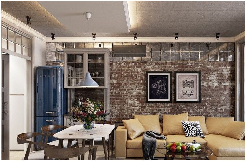Лофт. Привлекает своим нарочито-небрежным видом. Несмотря на индустриальную основу, создаёт в интерьере студии творческую и дружескую атмосферу.