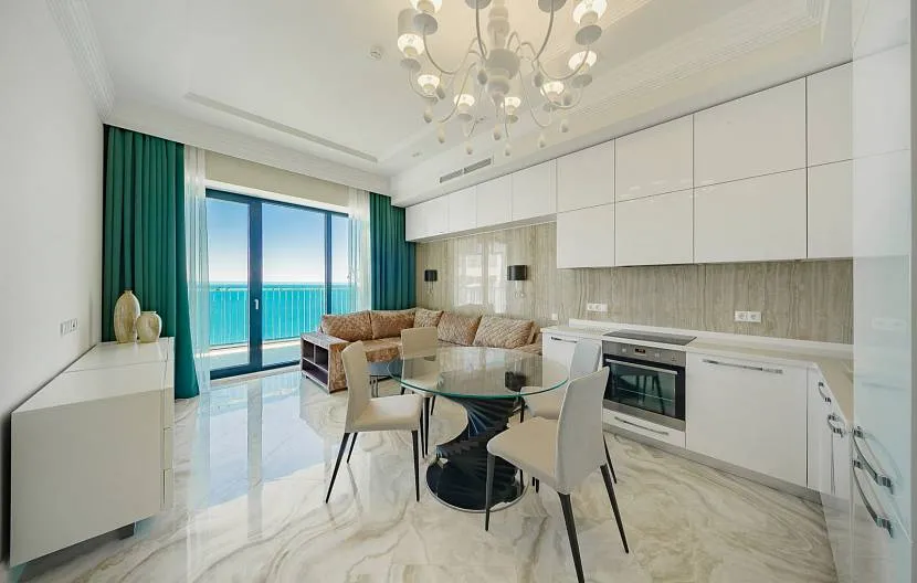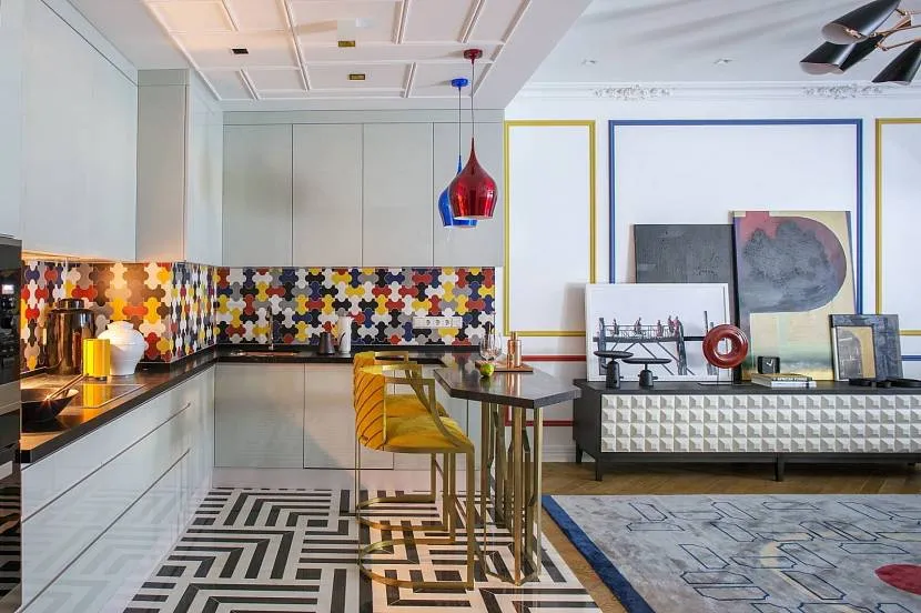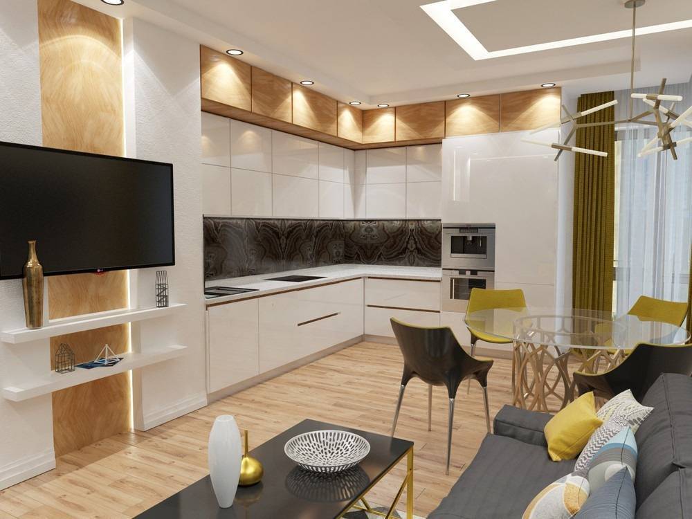 Несмотря на то что кухня и гостиная имеют разные функции, их дизайн должен перекликаться. Помещение с гармоничным сочетанием цветов и фактур производит целостный и завершённый эффект.