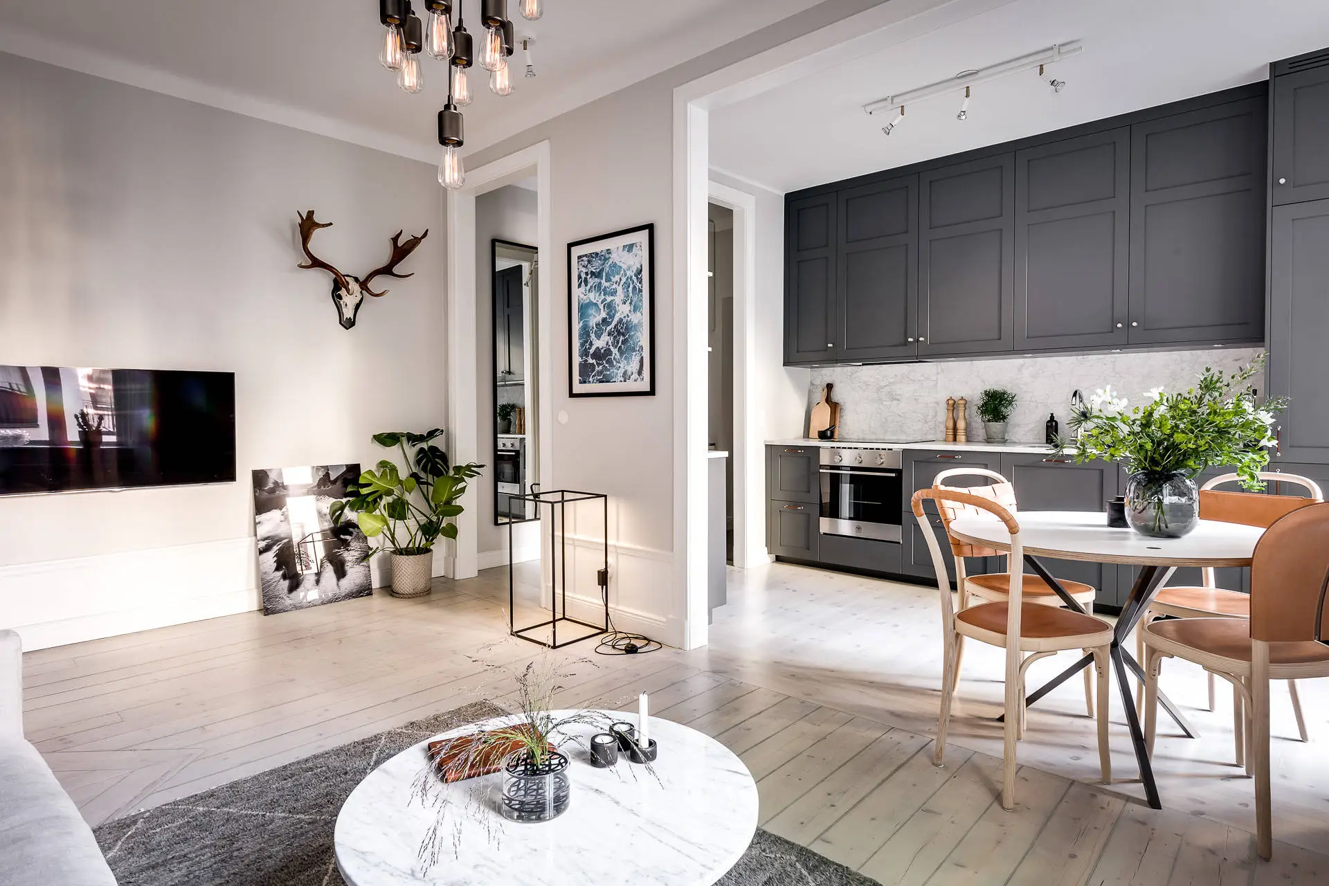 Поставьте обеденный стол на границе двух пространств и проблем с зонированием не возникнет