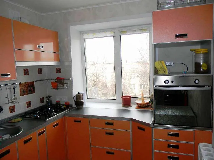 Совет о том, что перед приобретением чего-то нового необходимо избавиться от старого, в маленькой хрущевской кухне остается наиболее актуальным. Здесь не только нет лишнего места, даже для свободного прохода не хватает нескольких сантиметров в ширину, если есть корпусная мебель. Хотя при вызове мастера встроенная мебель обходится немного дороже, чем готовая кухня, это наиболее рациональное решение, чтобы пристроить всю кухонную утварь.