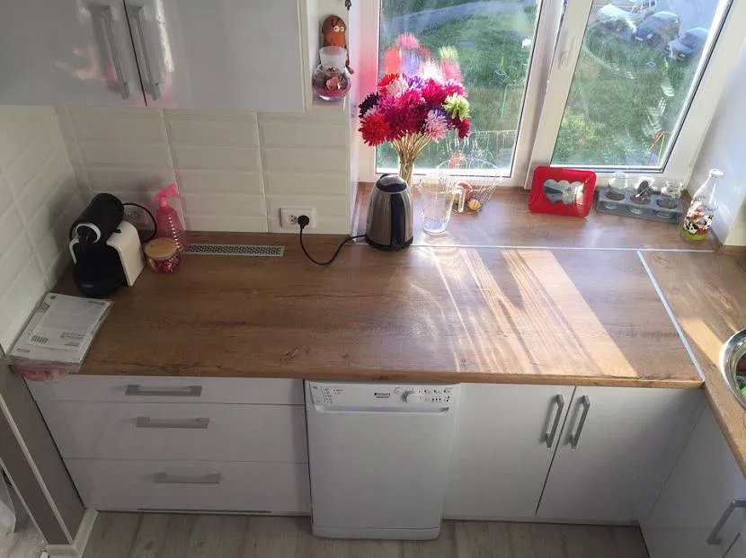 Широкая кухонная столешница — отличный выбор для кухни 5 кв. м