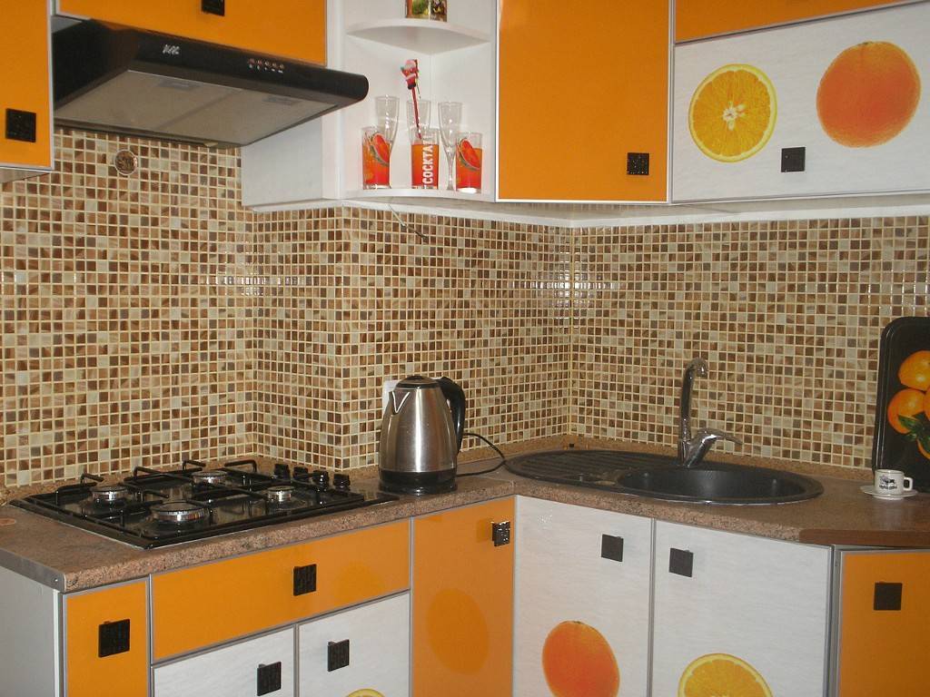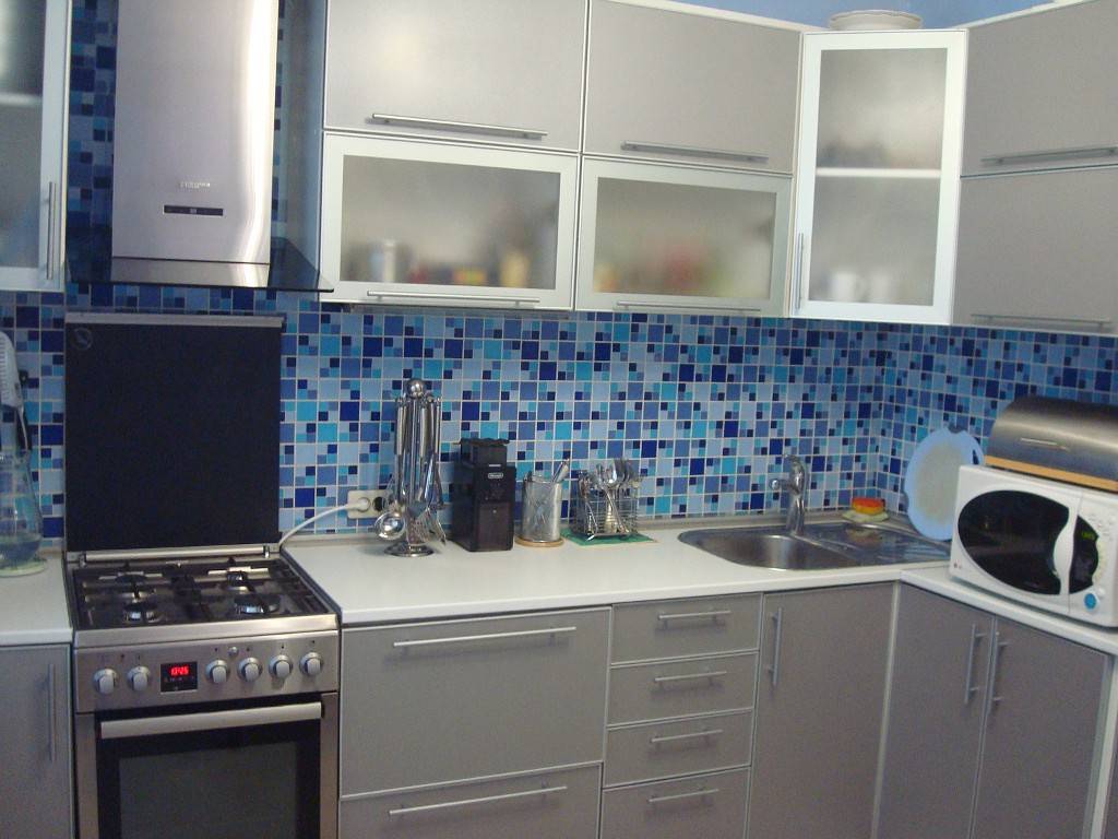 Мозаичный фартук — находка для небольшой панельной кухни