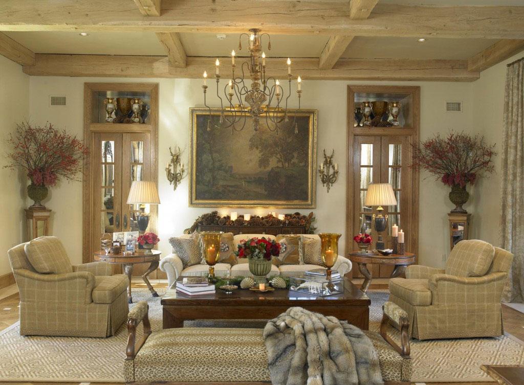 Должное внимание нужно уделить конфигурации и конструктивным особенностям жилых помещений: оборудовать широкоформатные оконные проемы, выполнить строительство колон в просторных помещениях с высокими потолками, в больших дверных проемах установить арки, украшенные фигурной лепниной, схожей по дизайну с декором гипсовых потолочных карнизов. Для нейтрализации эффекта вычурной роскоши стоит оборудовать потолок деревянными балками в духе старины, сделать настил на полу из грубо обработанных дощатых досок, оформить столы домоткаными льняными скатертями, глиняными горшками с неглазурованной поверхностью, вазами с иллюстрациями богемных персонажей Древнего Олимпа или полководцев Римской Империи. Для нейтрализации эффекта вычурной роскоши стоит оборудовать потолок деревянными балками в духе старины, сделать настил на полу из грубо обработанных дощатых досок, оформить столы домоткаными льняными скатертями, глиняными горшками с неглазурованной поверхностью, вазами с иллюстрациями богемных персонажей Древнего Олимпа или полководцев Римской Империи