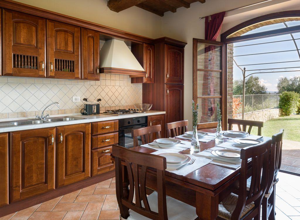 характерные атрибуты итальянского стиля: арочные проемы, каменные столешницы и плита с купольной вытяжкой