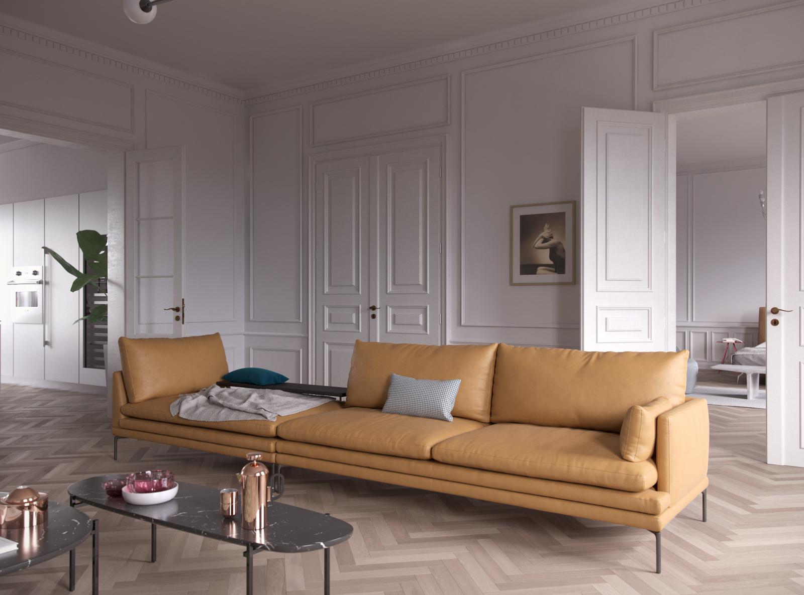 - Высокие оконные проемы с минимумом штор, через которые проникает достаточно солнечного света.