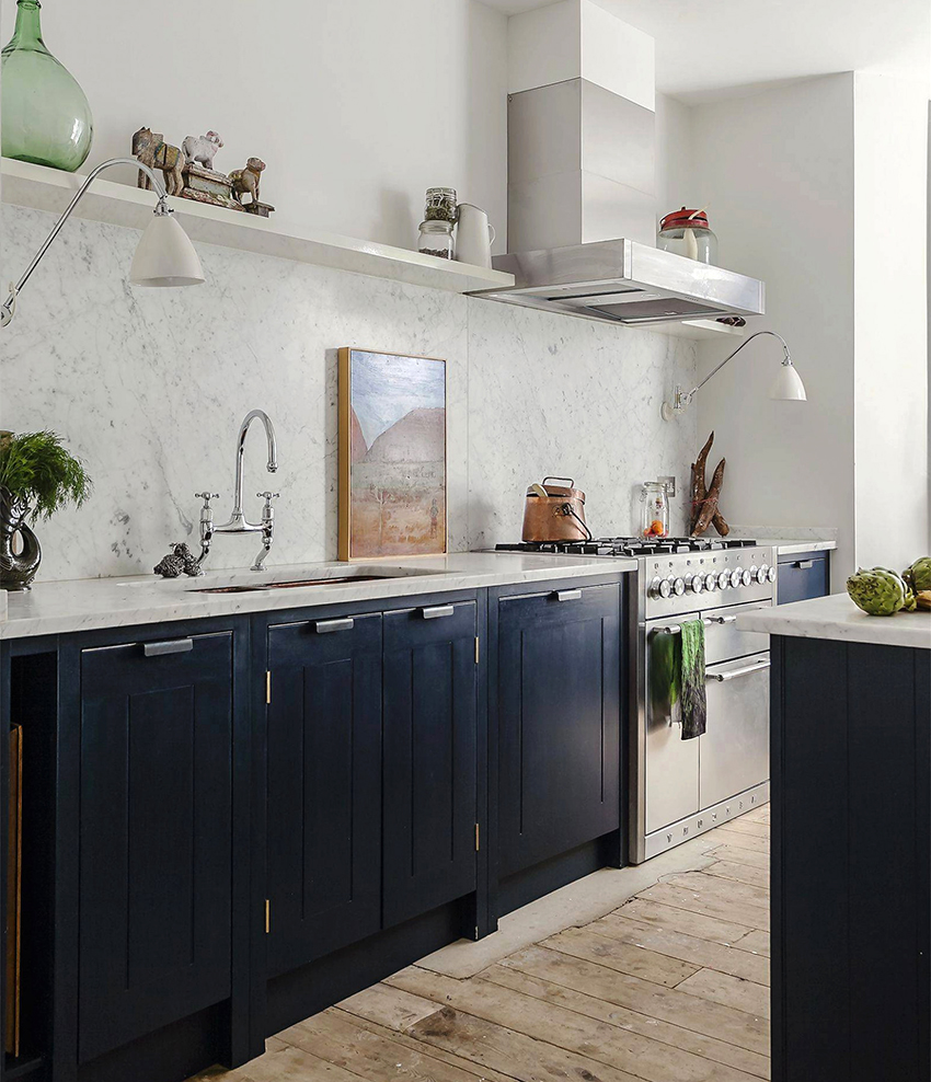 Скандинавские кухни в голубых оттенках смотрятся необычно и эффектно
