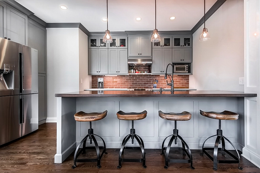 Отлично смотрятся кухни, оформленные в сочетании стилей ‒ лофта и скандинавского
