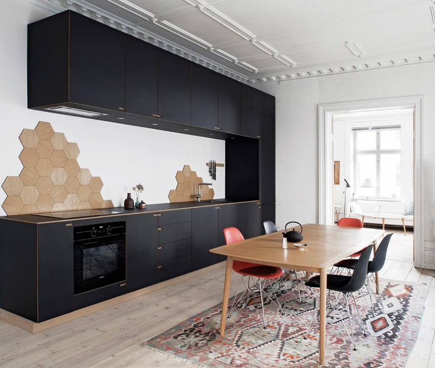 Черный и графитовый цвета часто используются в скандинавских кухнях
