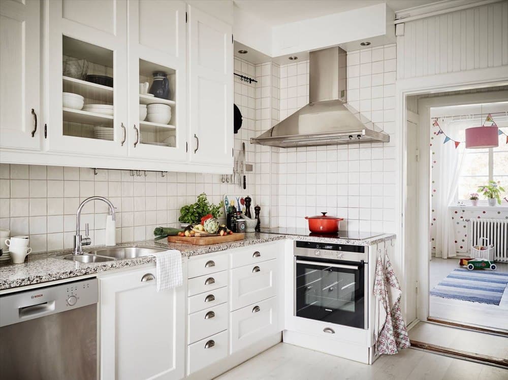 На скандинавской кухне, как уже ранее говорилось, все элементы должны быть практичными и универсальными. Умные системы хранения, выдвижная вытяжка, встроенная техника – все это неотъемлемые атрибуты этого стиля.