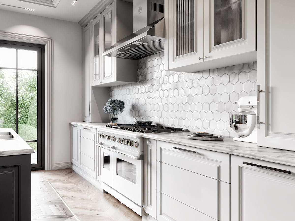 Поддерживая моду 2023 года на практичность использования, неоклассика сочетает в себе прямые фасады и характерный рельеф классического стиля с современными и функциональными решениями: продуманными системами хранения, высокотехнологичной техникой, яркими элементами. Такой микс помогает кухне выглядеть свежо и стильно.