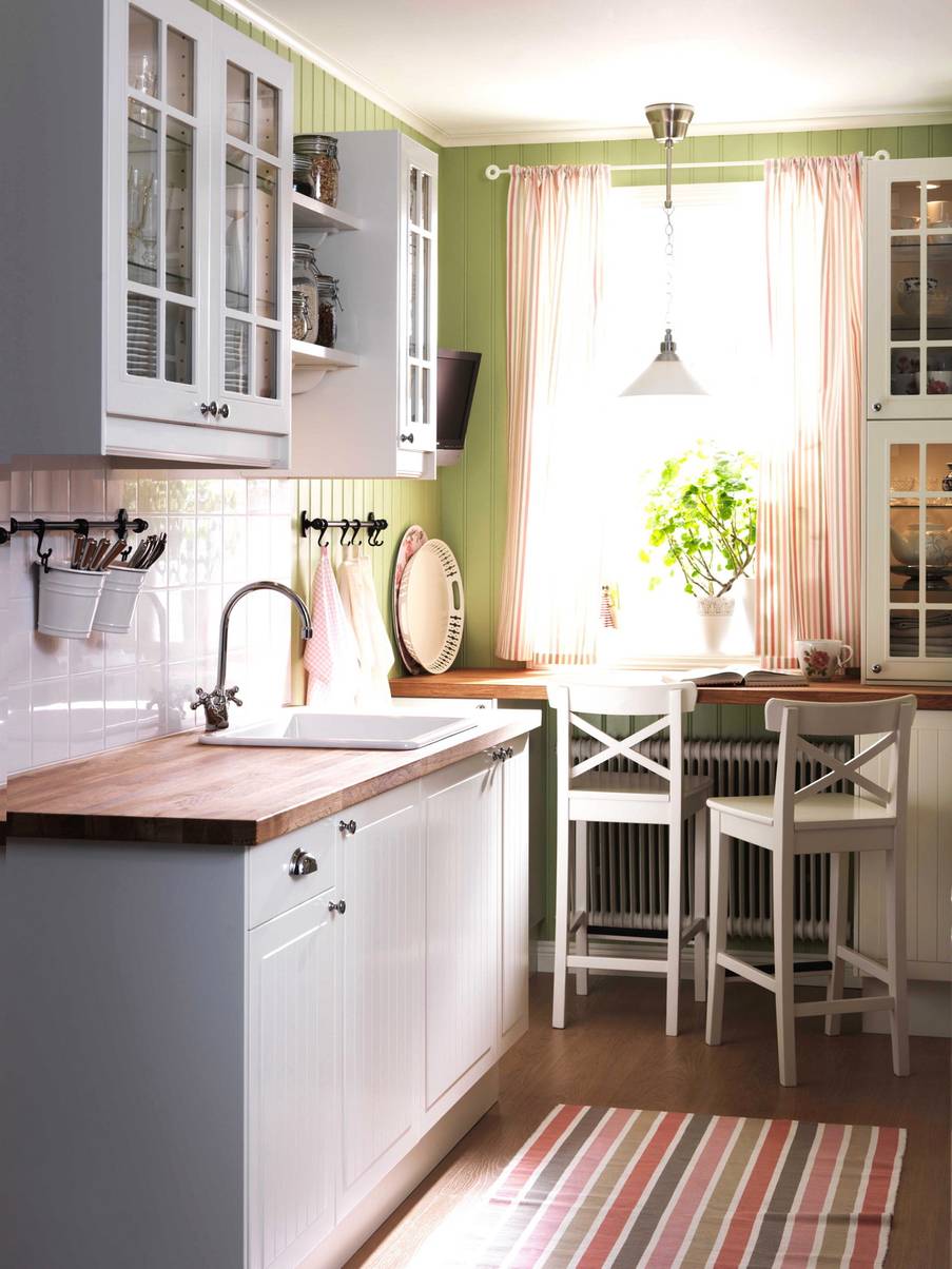Избегайте излишней и/или некачественной бутафории и имитаций. Например, пресловутая «грубая кирпичная стена» не должна быть нарисована – она действительно должна быть грубой, хоть и обработанной и покрашенной. А засушенная лаванда гораздо органичнее впишется в интерьер кухни в стиле прованс, чем искусственная. Но совсем без бутафории в городской квартире не обойтись, а использование только натуральных материалов в отделке и мебели не всегда оправдано и доступно. Поэтому, «стилизованность» деревенской кухни в городской квартире вовсе не недостаток, если она гармонична, а главное – нравится вам и вашей семье.