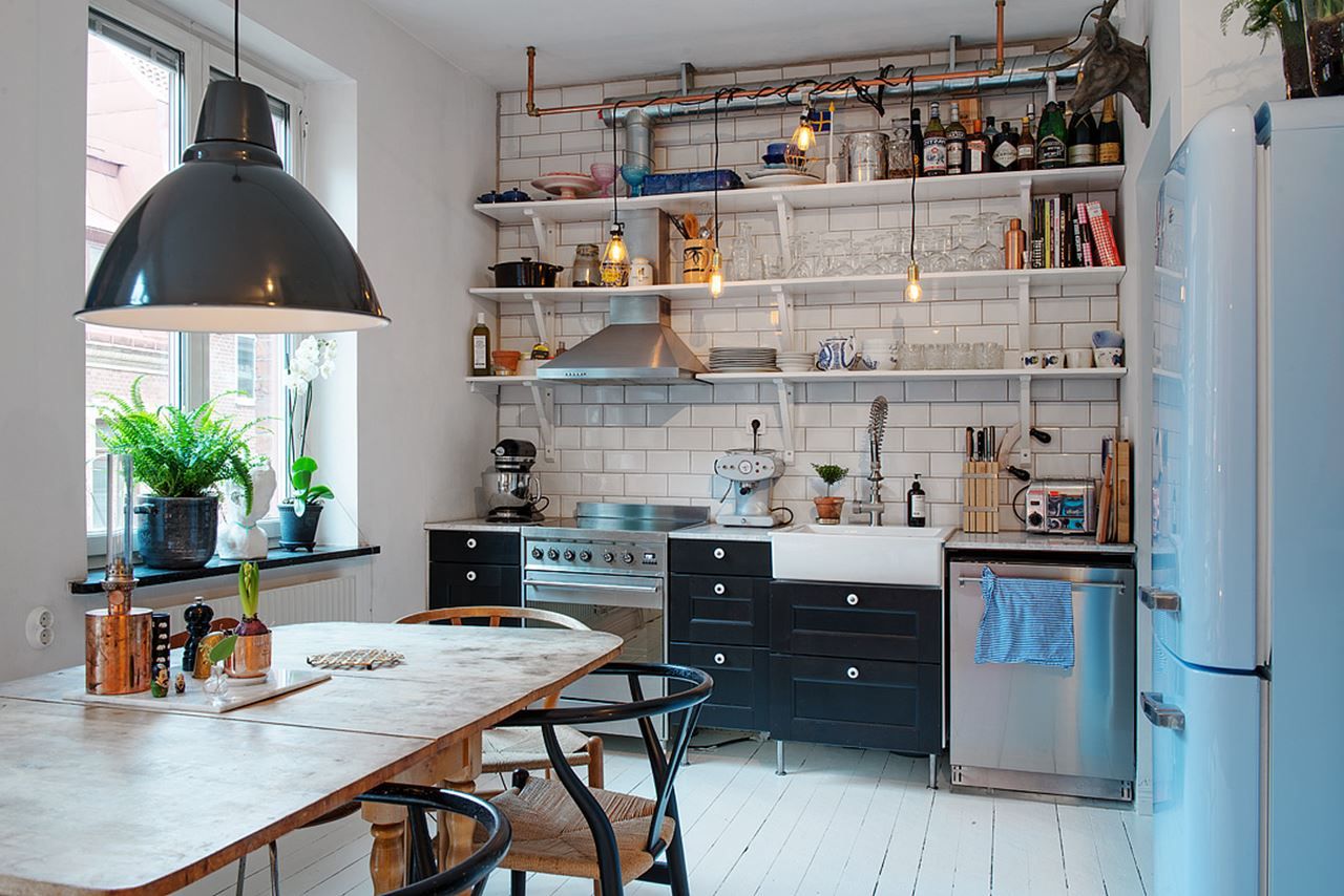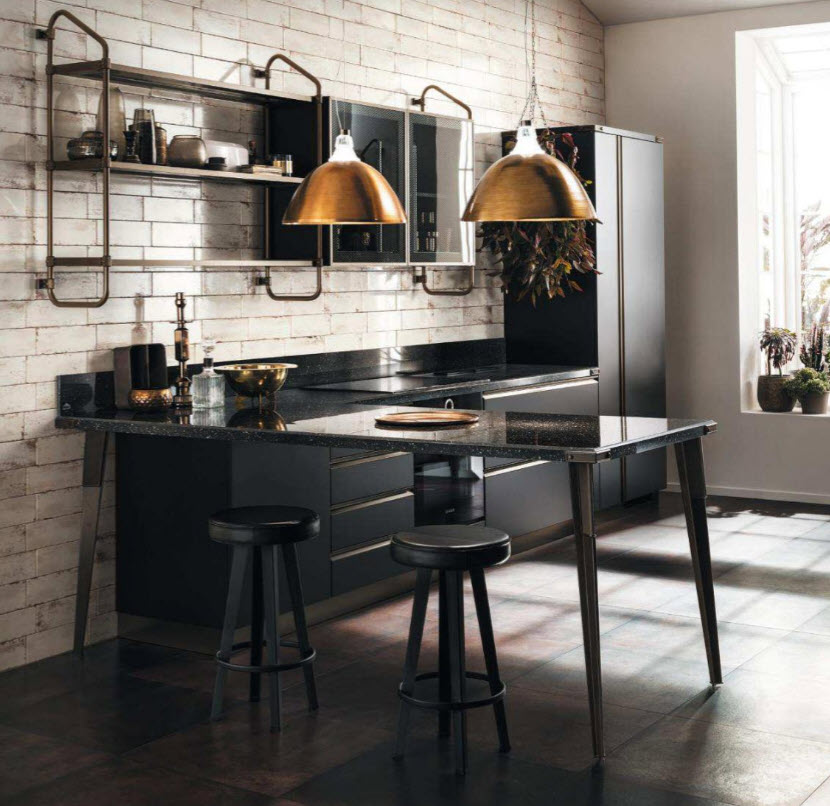 Одна кухня-лофт обычно сочетает в себе несколько видов светильников