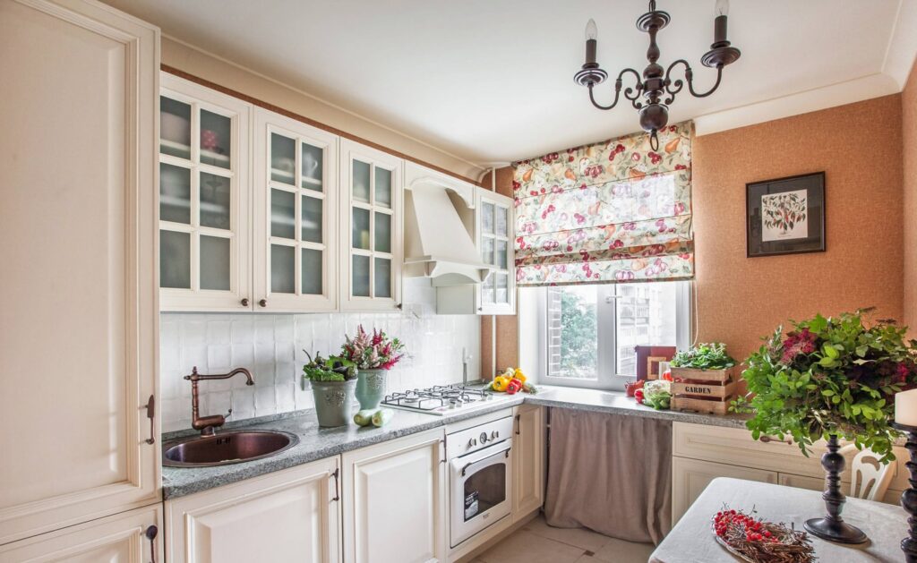 Текстиль и шторы для маленькой кухни прованс