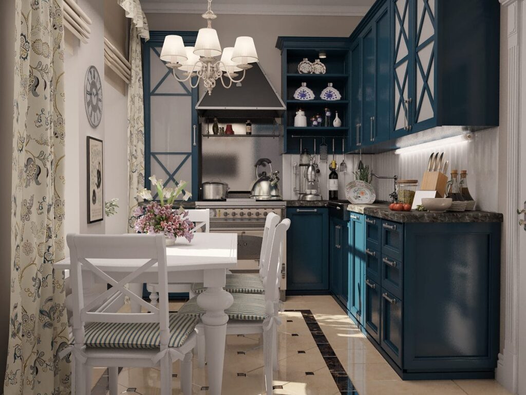 Создать дизайн-проект маленькой кухни прованс помогут фото.