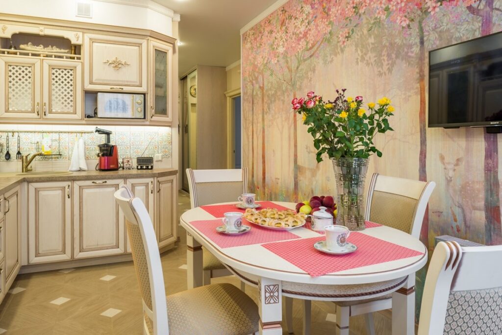 Поскольку кухня отличается высокой проходимостью и повышенной эксплуатацией, для нее следует использовать только качественные и прочные обои. Неважно, в каком стиле вы будете оформлять кухню: прованс, классика, барокко или даже попробовать что-то новое, свое в интерьере — материалы должны быть износостойкими и моющимися