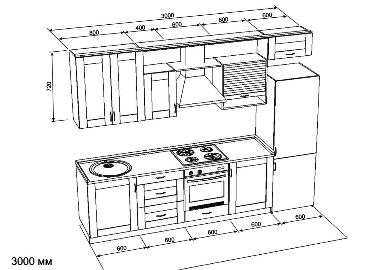 Конечно изготавливая кухонной гарнитур своими руками можно устанавливать произвольные размеры, но тогда придется отказаться от готовых компонентов кухни (например, фасад), и все элементы изготавливать по индивидуально.
