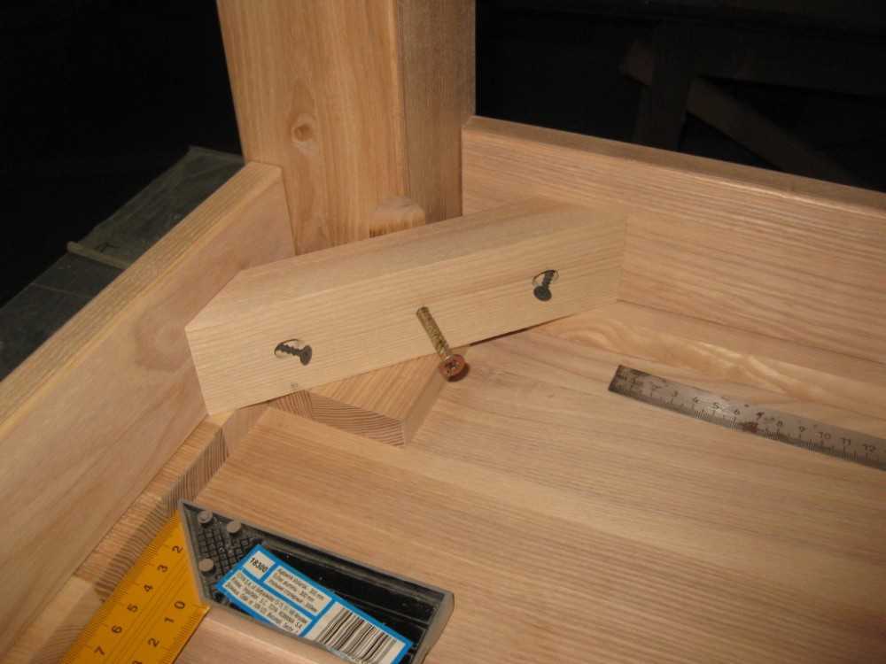 Сначала необходимо собрать опорную конструкцию с помощью шурупов и клея (вначале сверлом высверливаются тонкие каналы на длину шурупа, в противном случае есть вероятность расщепления детали)