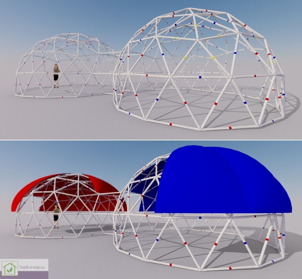 Для изготовления купольной теплицы используются каркасы двух типов: