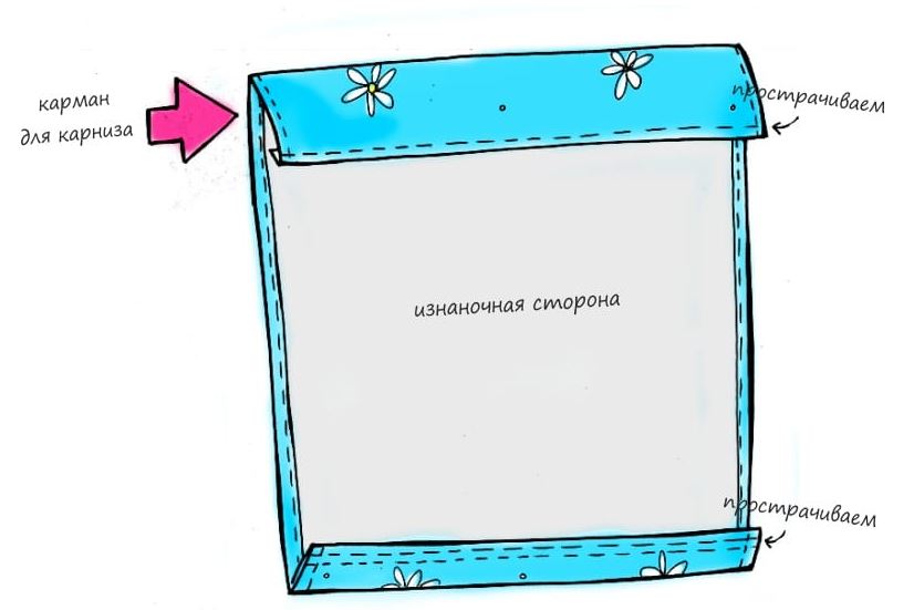 - К боковым сторонам трапеции пришиваются ленты для штор, и стягиваются.