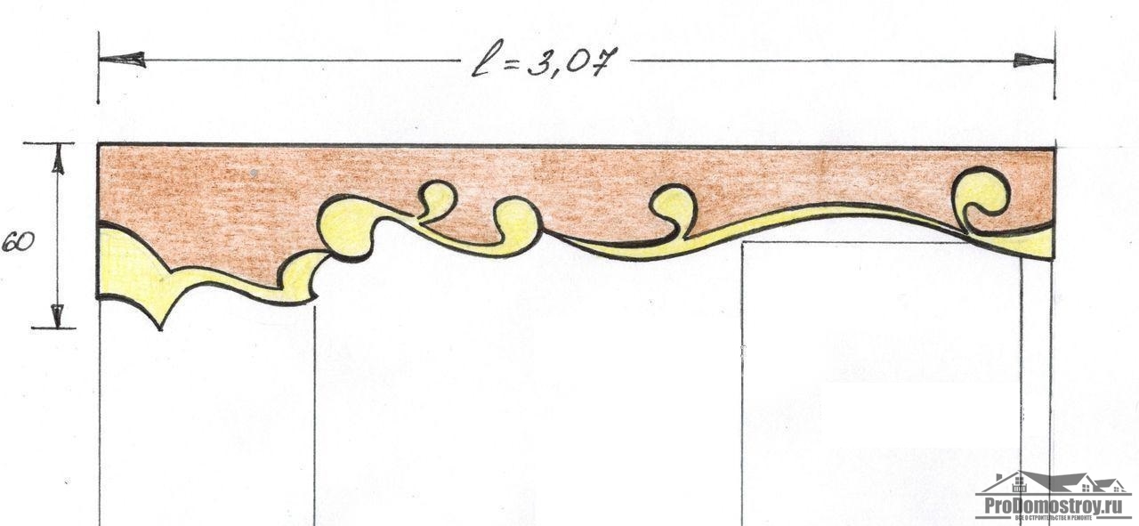 Выкройка для клеевого слоя должна быть на несколько сантиметров больше выкройки самого деревянного карниза, так как материал необходимо будет загнуть вокруг всей деревянной основы.