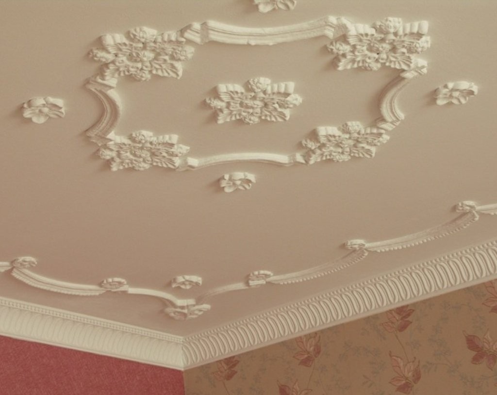 - Гипсовые. Гипс имеет множество достоинств и является экологически чистым материалом. С его помощью можно создавать сложные элементы высокого качества и мельчайшие узоры лепнины, тем самым придавая потолку неповторимый вид.
