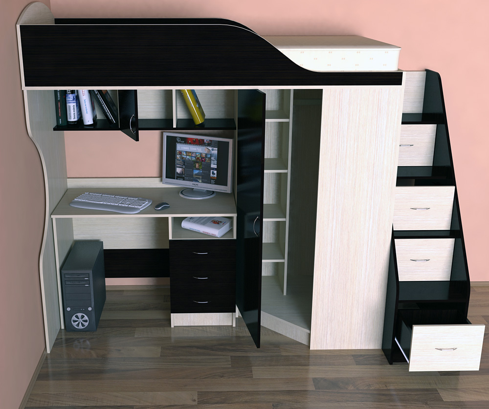 - кровать чердак с игровой зоной, горкой, компьютерным столиком;