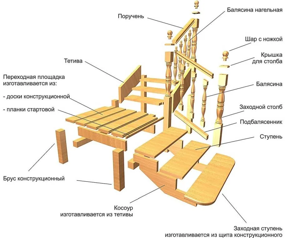 Монтаж ступеней и перил при изготовлении деревянных лестниц своими руками
