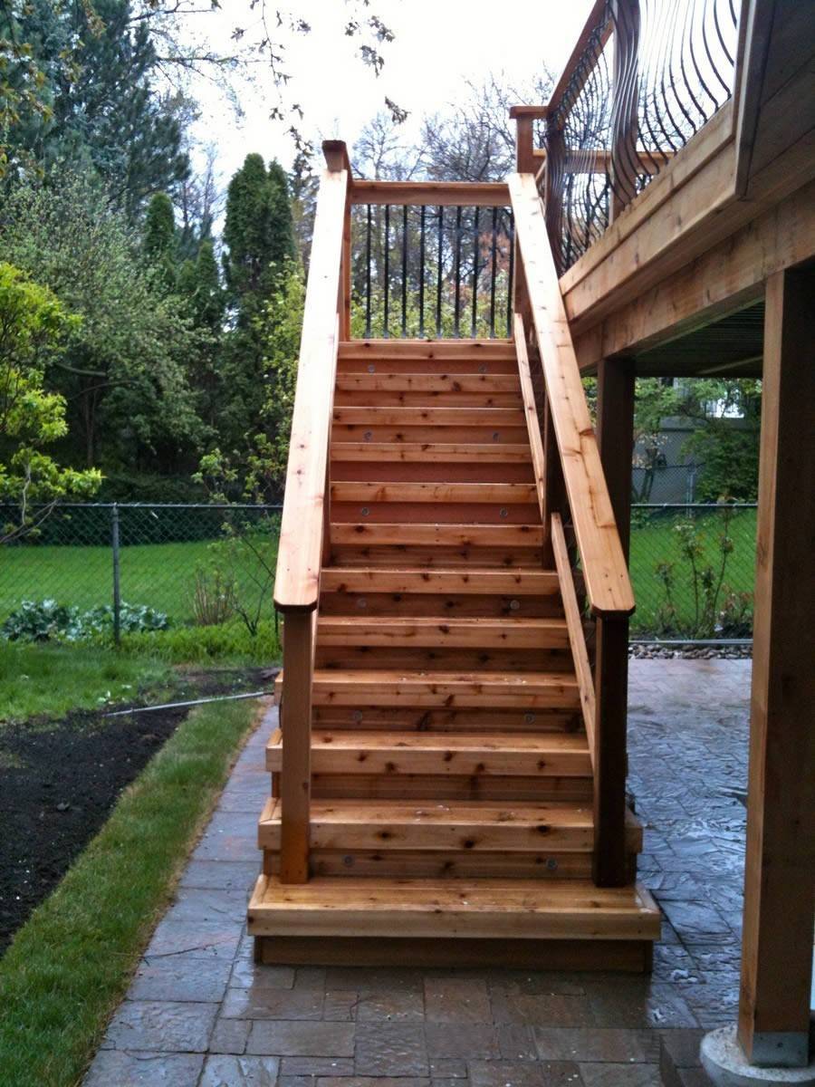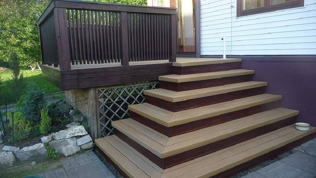 Чаще всего лестницы на террасу или веранду делаются из дерева: деревянные конструкции достаточно легко собираются своими руками, выглядят стильно и привлекательно.
