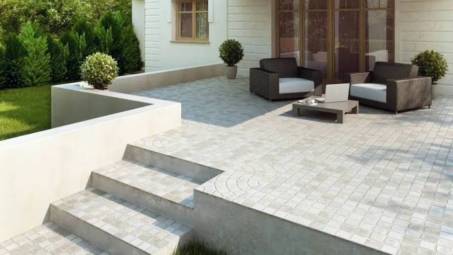 Поверхности отделываются плиткой или клинкером, швы тщательно затираются водоотталкивающими составами. Плитку для отделки лучше выбирать с шероховатой, рельефной поверхностью, произведенную методом вибропрессования. Вибролитые разновидности имеют идеально гладкую поверхность. В зимнее время они покрываются наледью. Перемещаться по ним опасно.