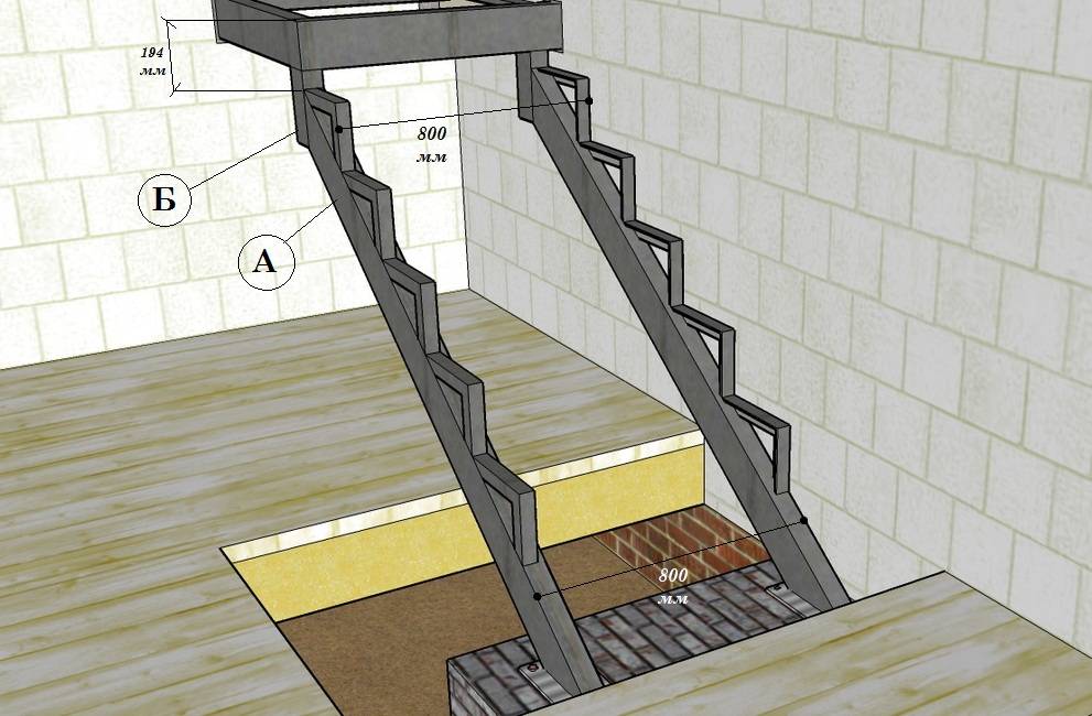 Если опора будет прямой, размеры ступенек значения для этого элемента не имеют. Если зубчатый, необходимо сделать спилы нужного размера. Расчеты учитывают: