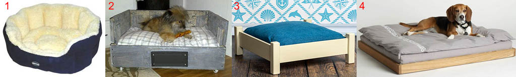 Для щенка заменить такую возможно деревянной лежанкой для кошки (поз. 2), только набивка матраца нужна другая, см. выше. Для взрослой собаки желательно сделать простую кровать (поз. 3) с ламелями из дощечек или полос фанеры толщиной 6-12 мм. Собаки человечьей эстетики не понимают, и эргономика для них проще, поэтому кровать для собаки может быть совсем простой деревянной рамой с ламелями и матрацем, поз. 4.