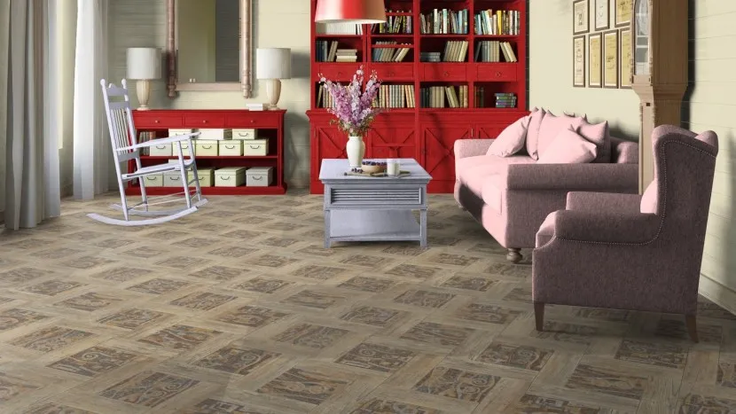 Для классических интерьеров и пола в деревенском стиле идеально подобрать дизайн, имитирующий камень или плитку под камень.