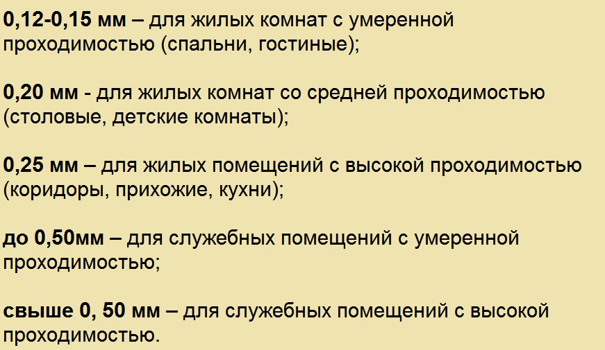 При решении задачи, какой линолеум выбрать для зала, кухни или другой комнаты, можно ориентироваться на следующие рекомендации: