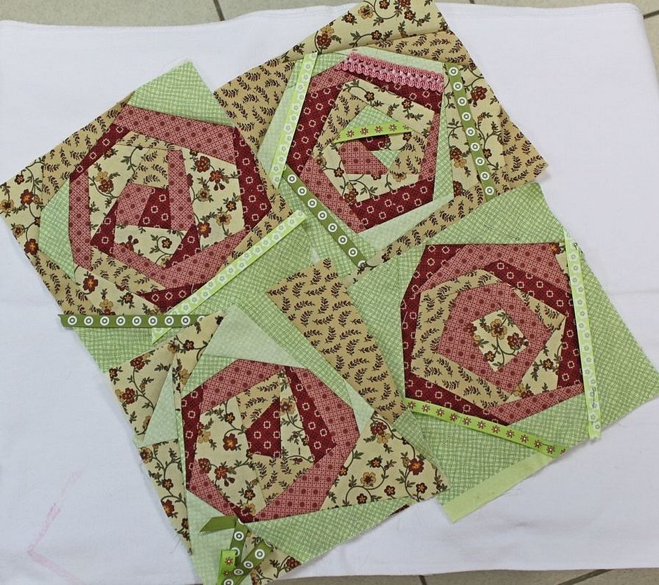 Тут есть возможность создать розы или сумасшедший квилт. В середину помещается небольшой квадрат и от него сверху начинается треугольник, далее по кругу, чтобы не оставалось свободного пространства.